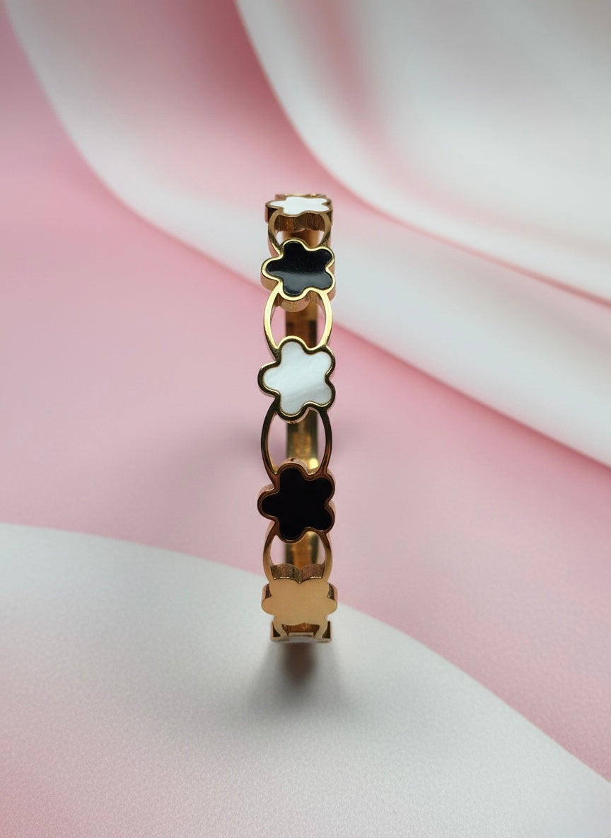 Black & White Clover Bangle Bracelet – Luxury Gold Finish